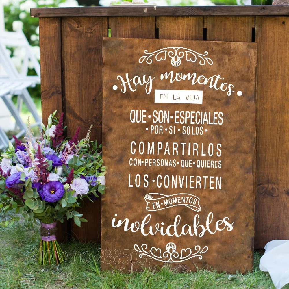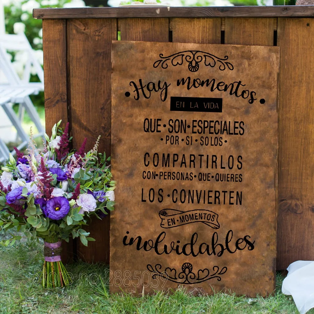 Spanish Wedding Wall Stickers Hay momentos EN LA VIDA Art Quote Decals Wedding Board Glass Decor Vi