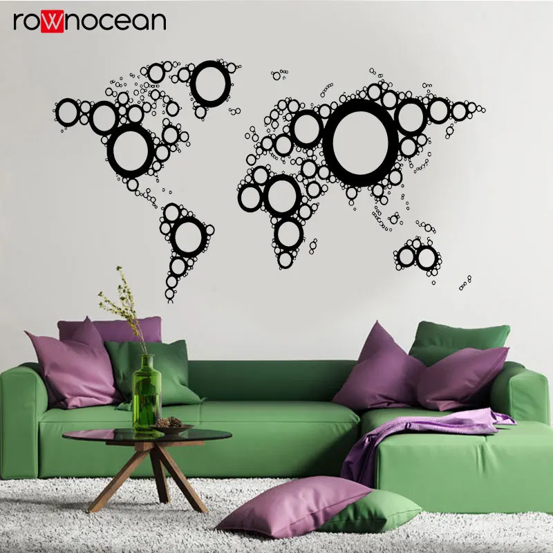 Creative Design World Map Circle Vinyl Home Decor Wall Sticker House Interior Living Room Decals Re