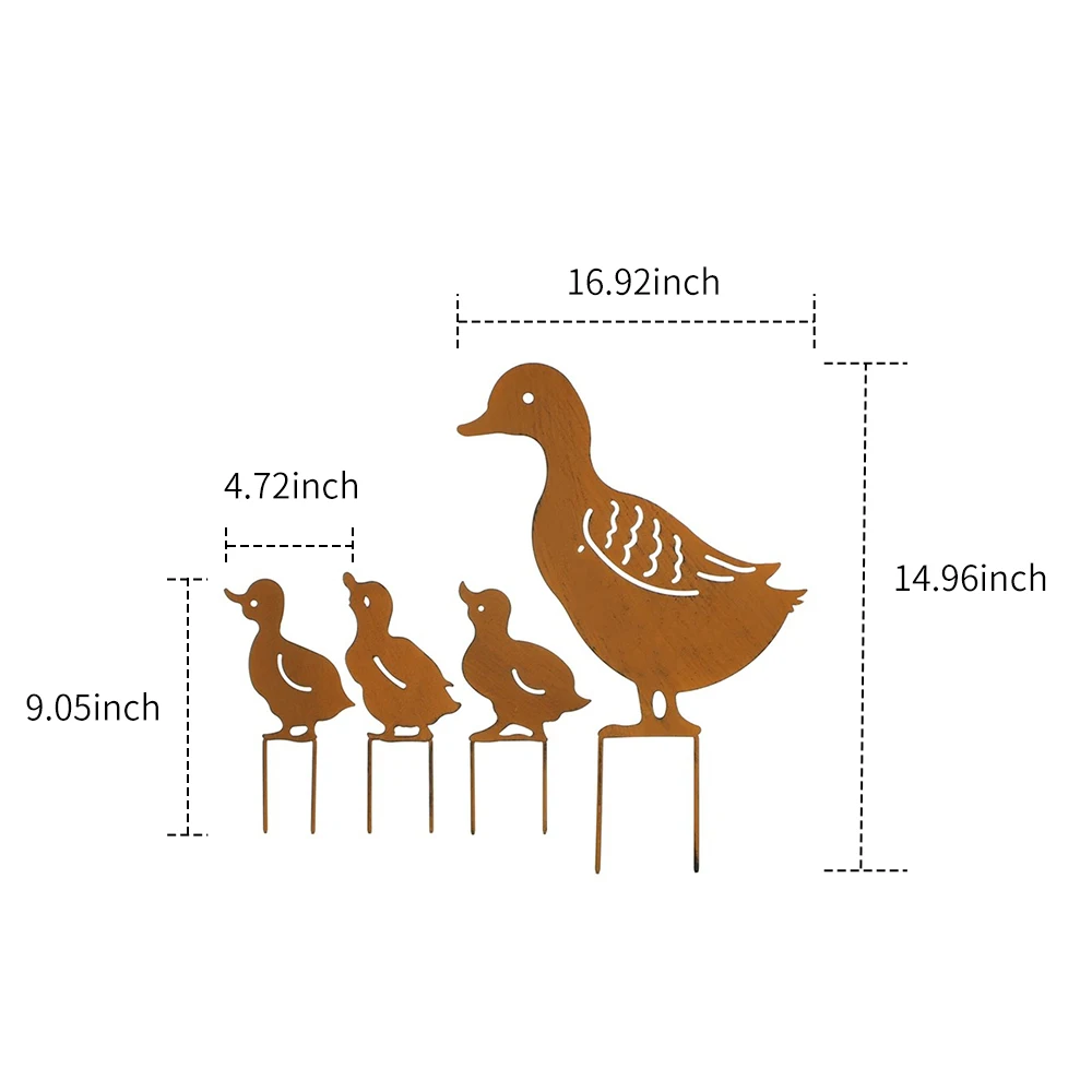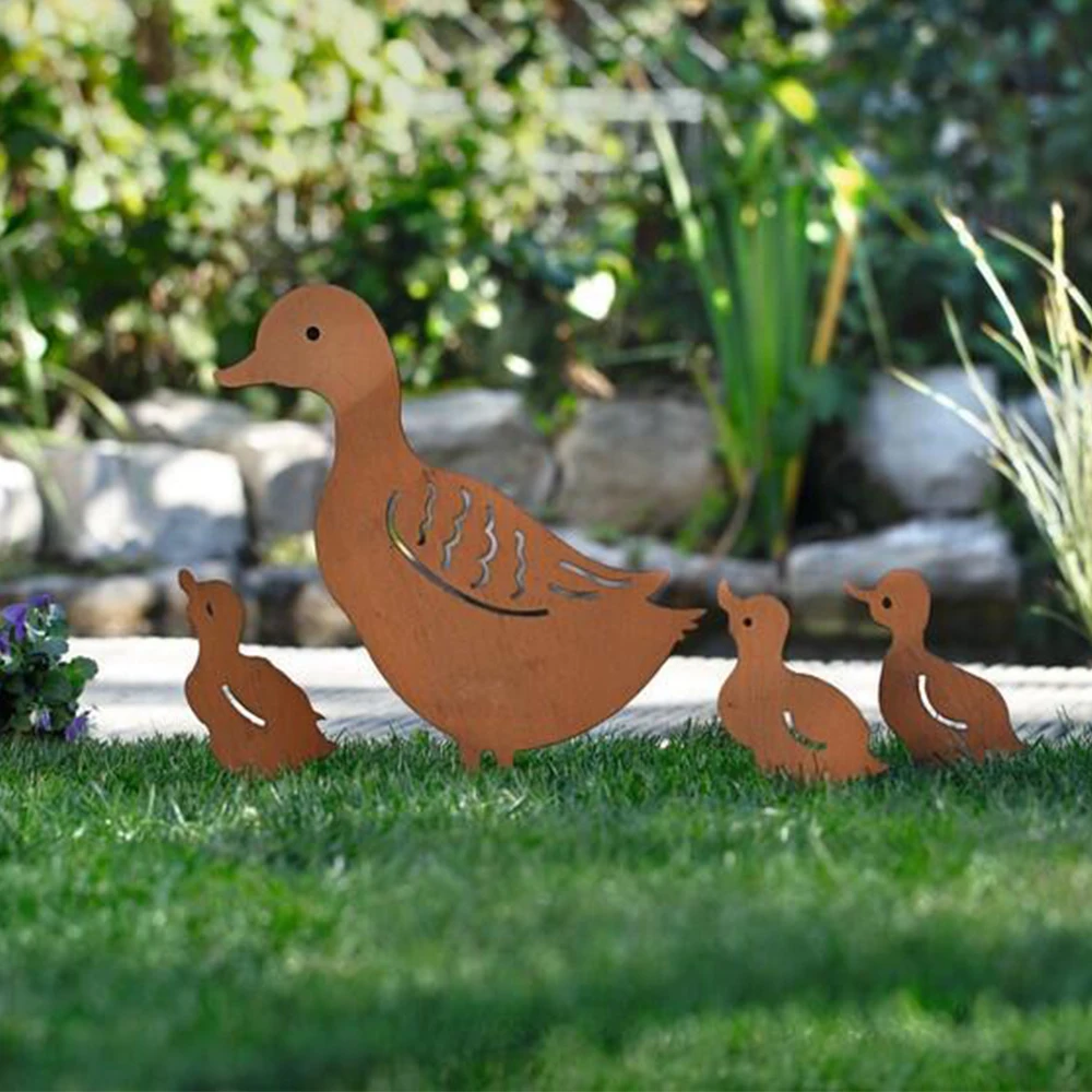 BEST New Duck Shape Garden Stake Metal Statue Animal Garden Retro Sculpture Outdoor Fences Lawn Decorati